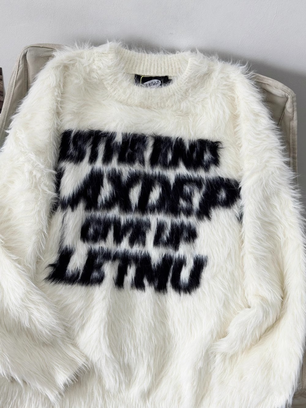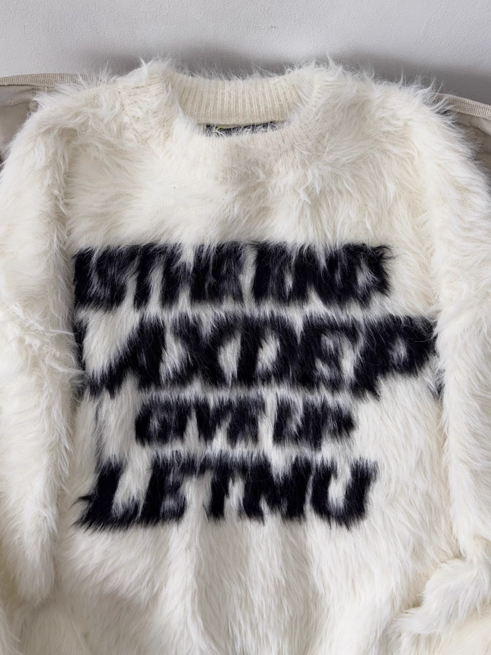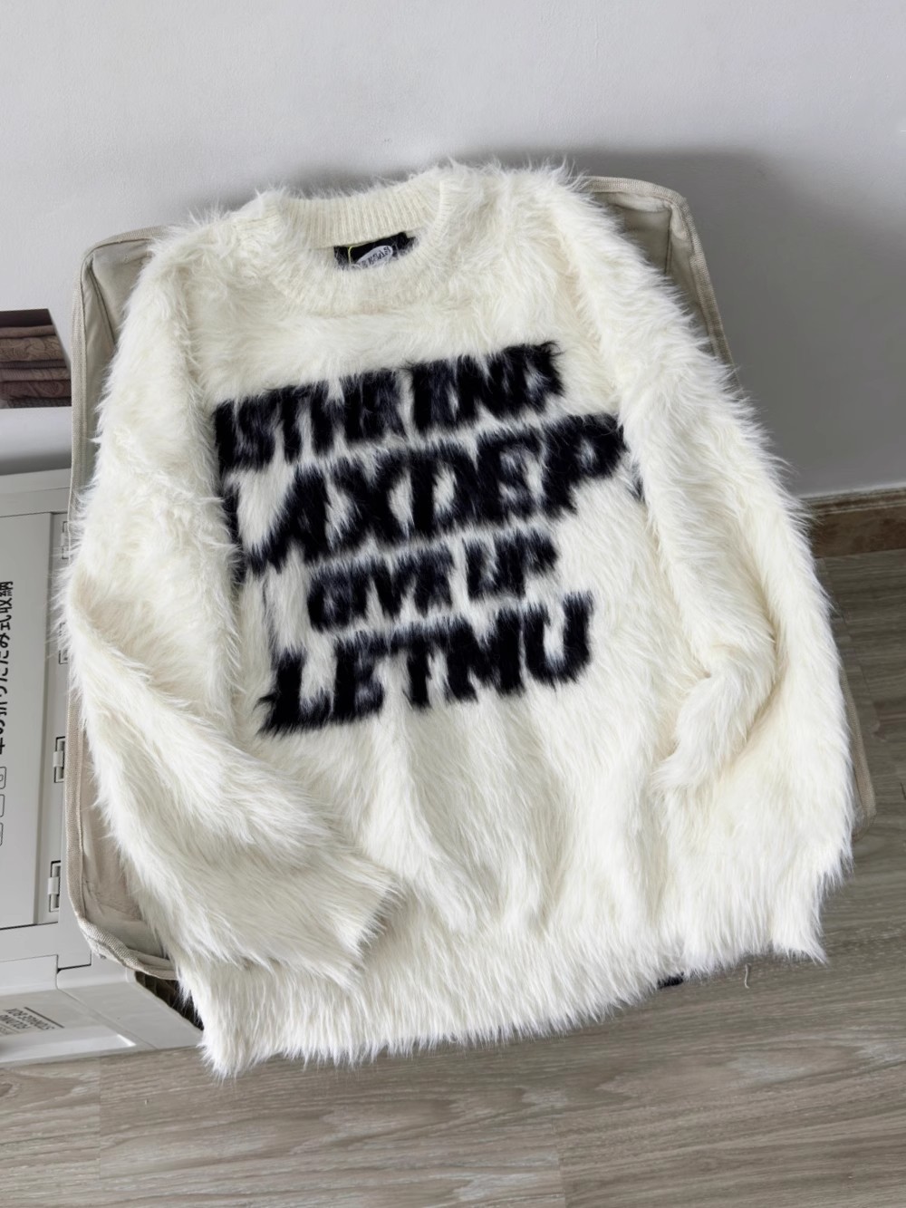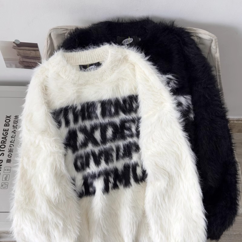 Loose letter imitation mink fur lazy style round neck knitted sweater