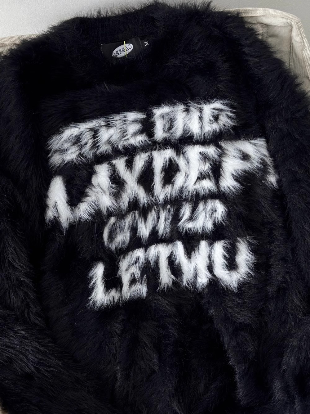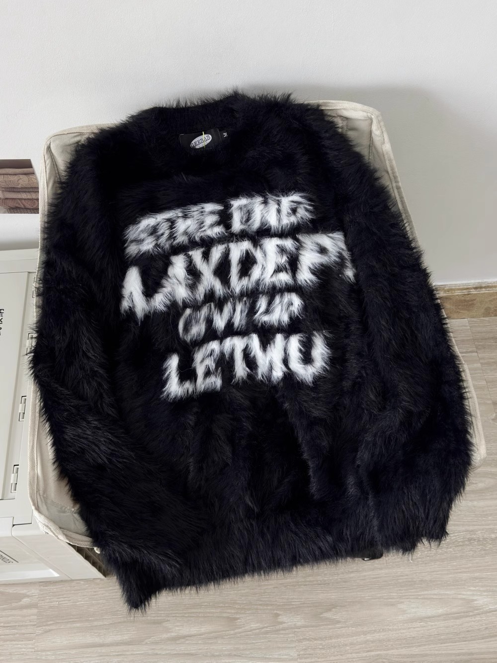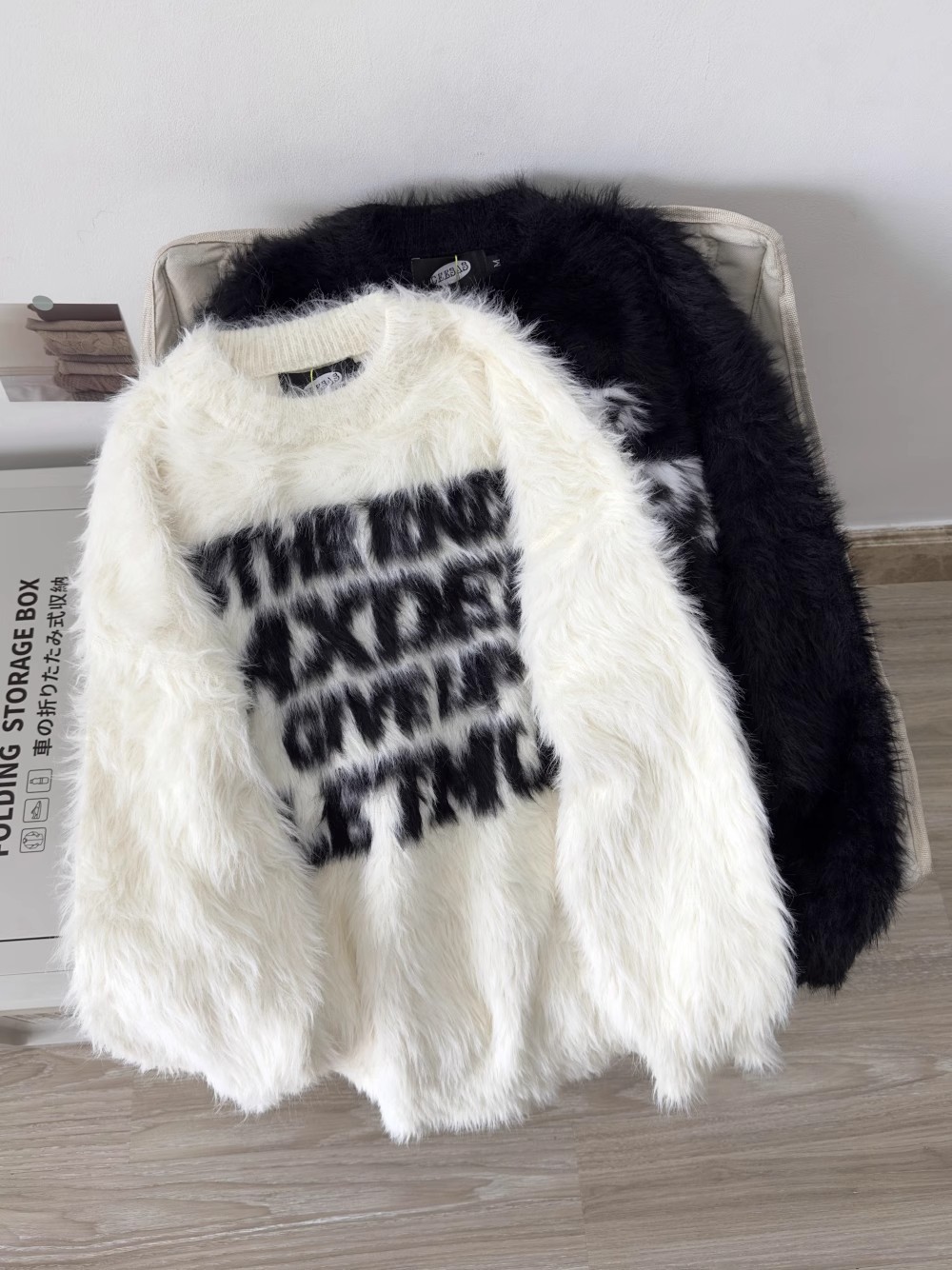 Loose letter imitation mink fur lazy style round neck knitted sweater